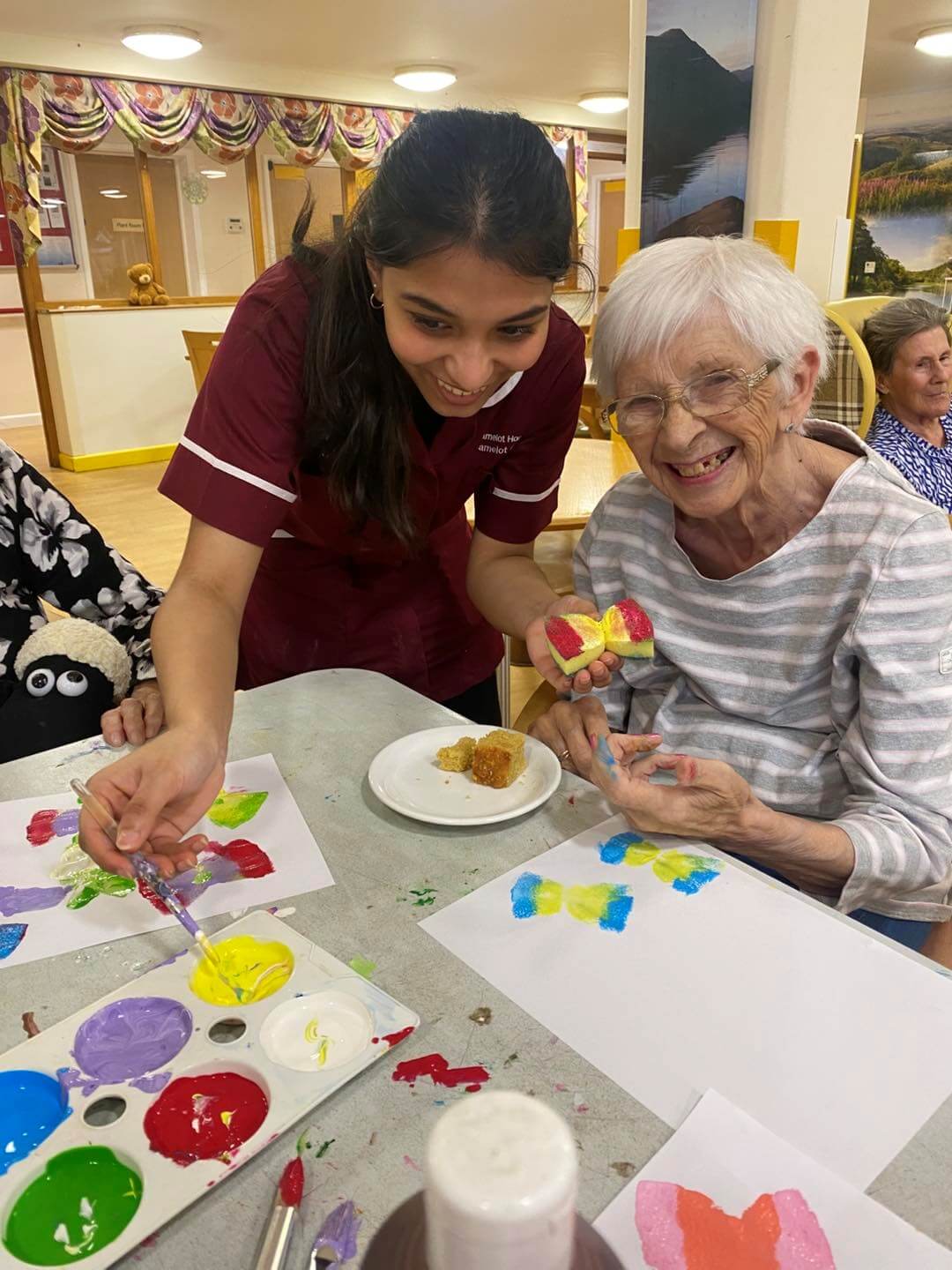 Activities co-ordinator Harriet Burraston said: “All this wet weather we’ve been having has meant we’ve had to postpone some of our outdoor activities, so we’ve been doing butterfly art with our residents as a way of bringing some of the outdoors inside.
