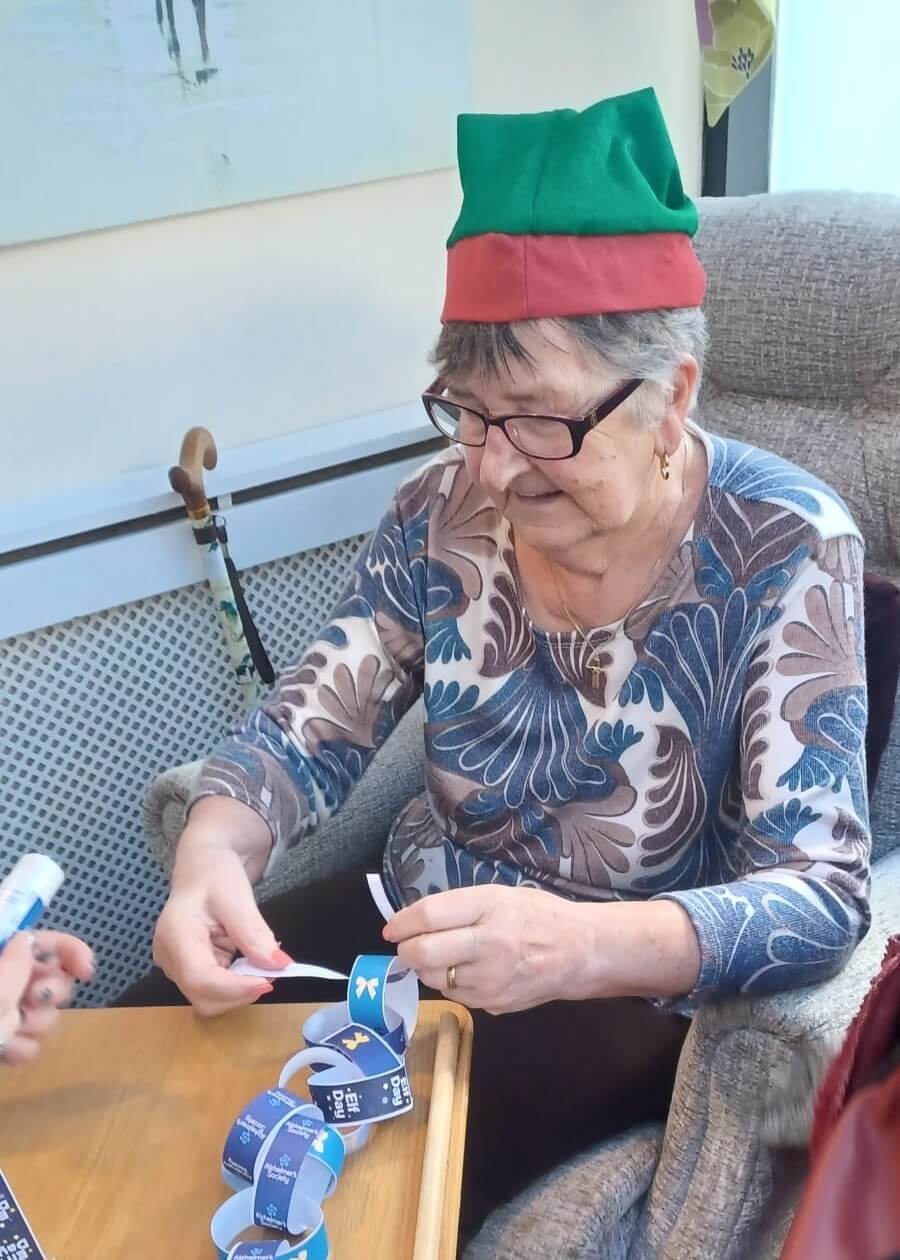Sarah said: “We had a full schedule for Elf Day, with activities including a visiting singer in the morning and elf-themed crafts in the afternoon. Residents made paper chains and designed their own elf hats.