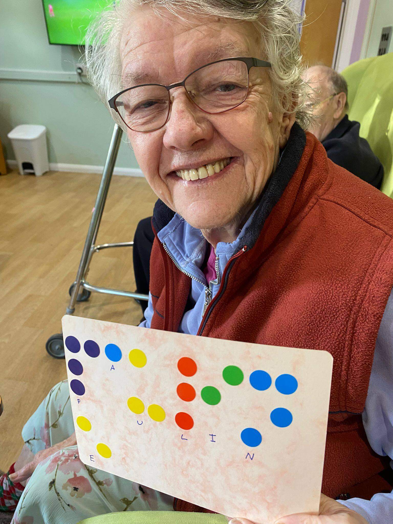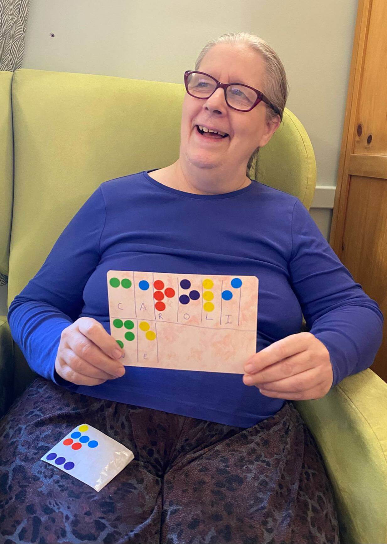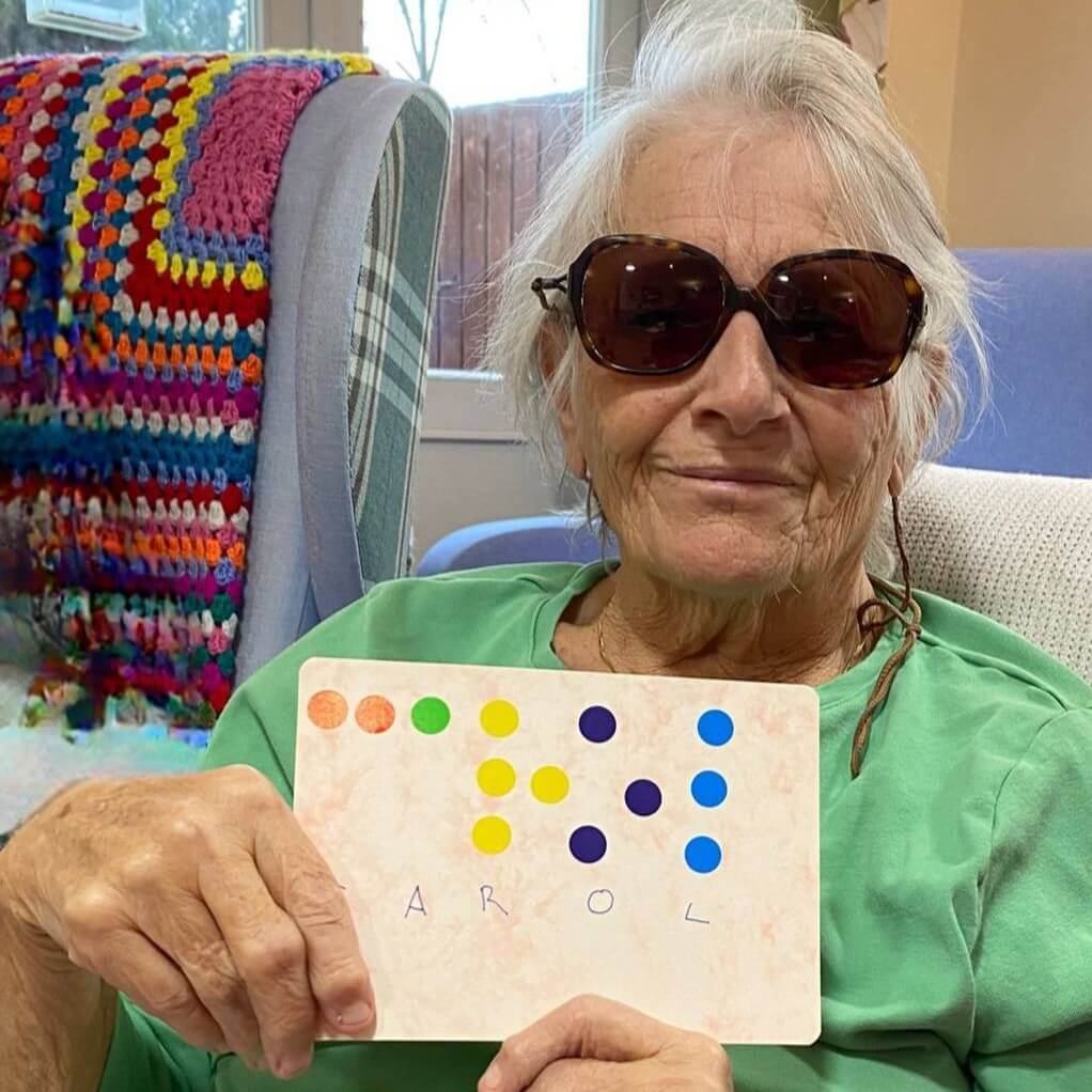 “Residents had great fun with a simplified version of the code: creating their names by picking their own colours and copying the braille alphabetic format.”