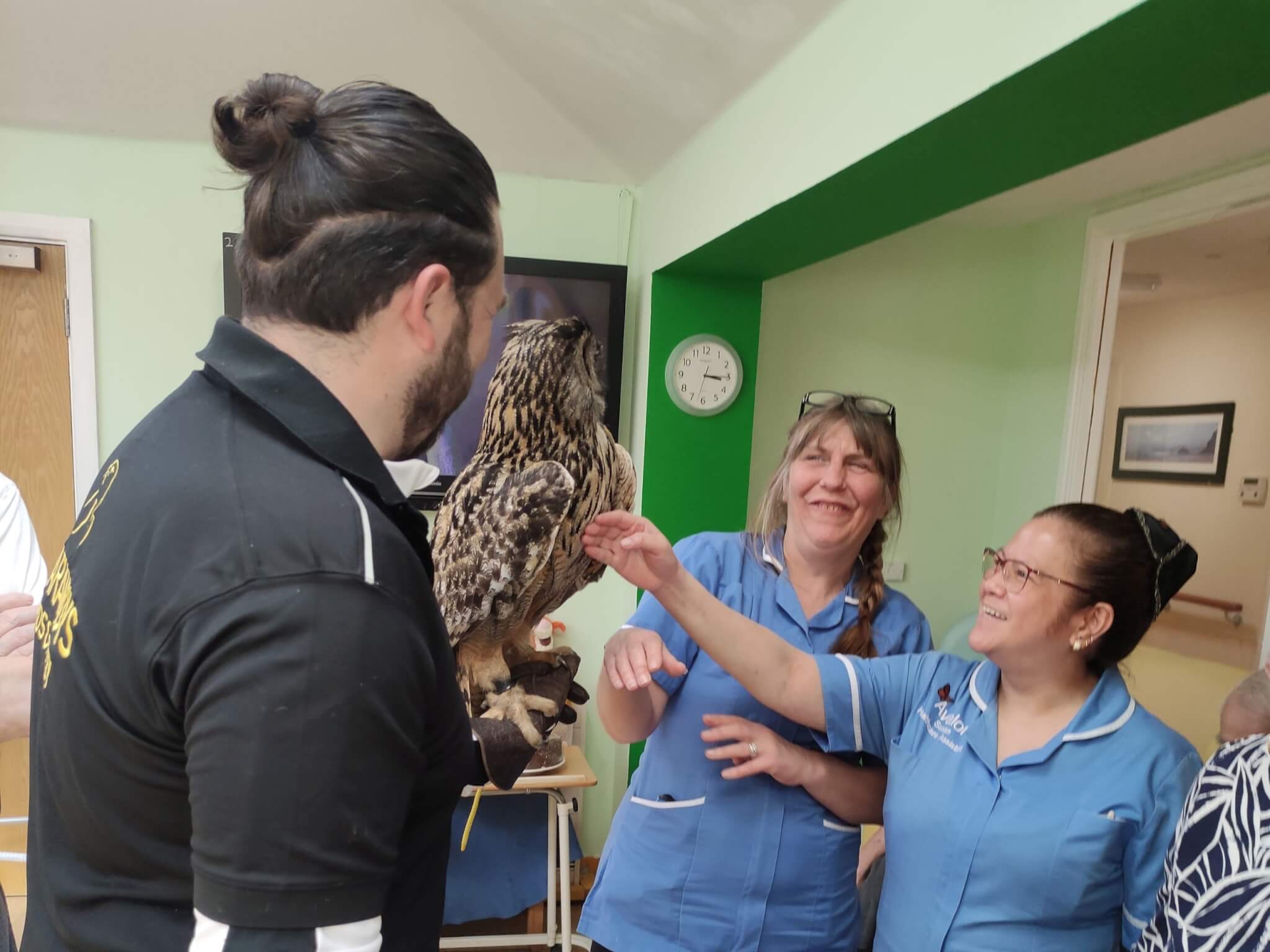 Residents at Avalon enjoyed a rare encounter with some of nature’s most majestic creatures during a visit by Somerset-based Sharandys Birds of Prey centre.