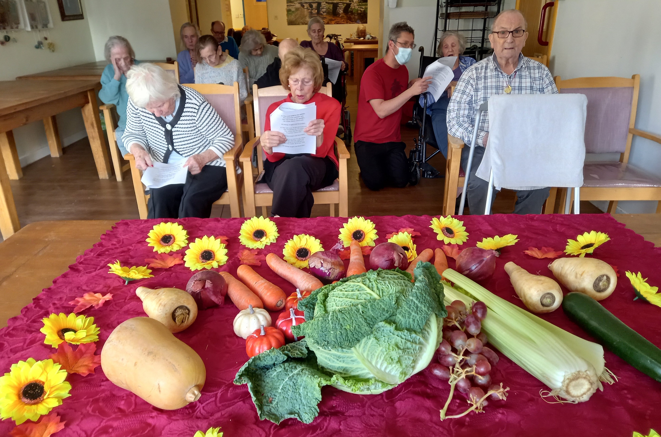 Residents at a specialist dementia care home in Wellington, Somerset have been celebrating an in-home Harvest Festival, with something for everyone from a Harvest samba to craft activities where flowers, fruit and veg were the main ingredient.