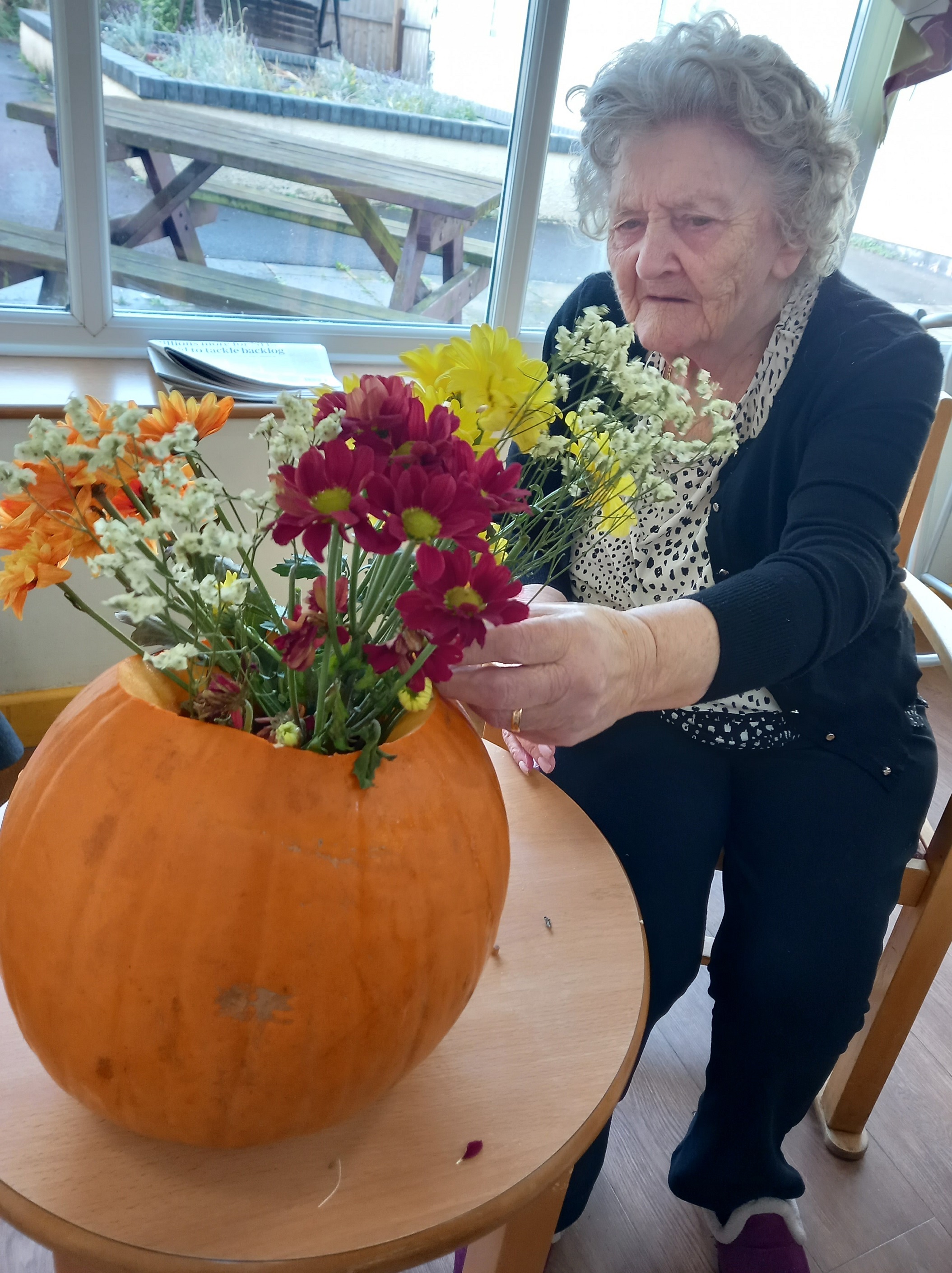 Richard Dempslake, activities co-ordinator for Camelot House and Lodge, said: “We’ve discovered that our residents aren’t that keen on Halloween but they do love pumpkins, so we incorporated pumpkins into our Harvest Festival activities – hollowing them out and filling them with flowers. We achieved some pretty spectacular results!