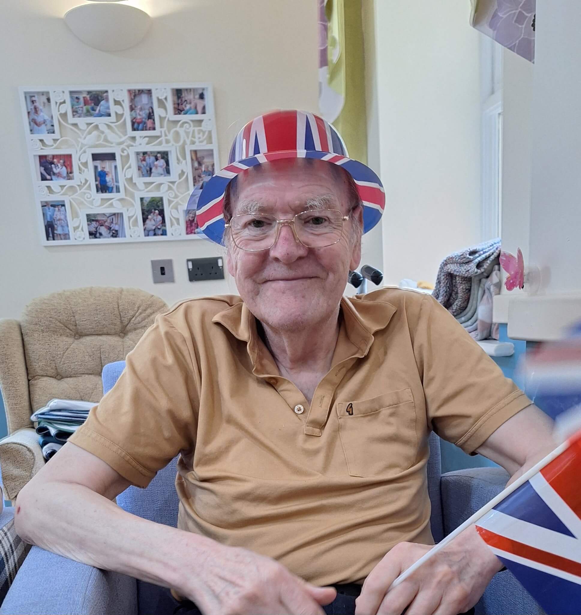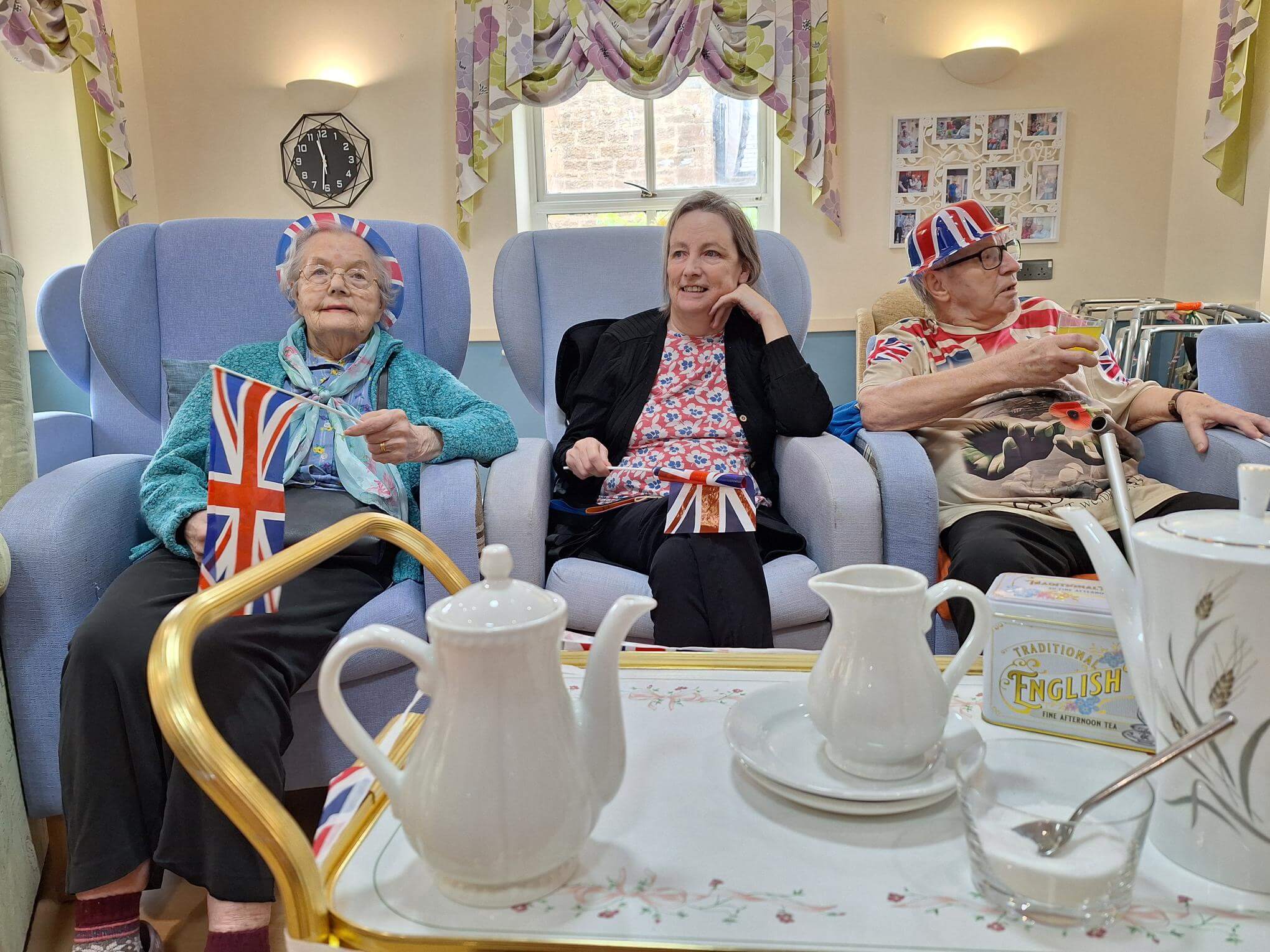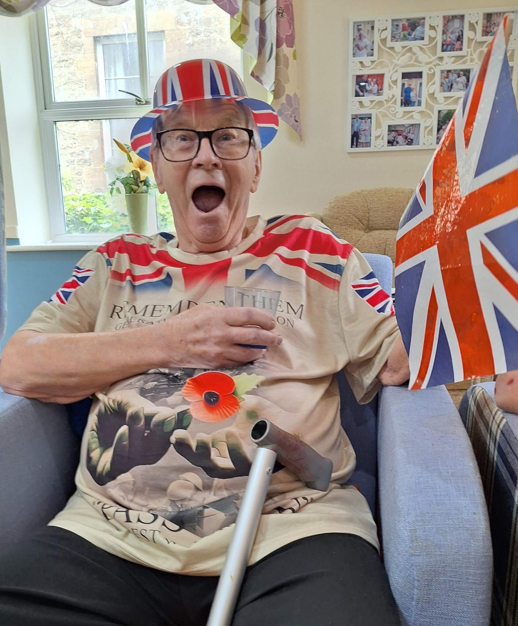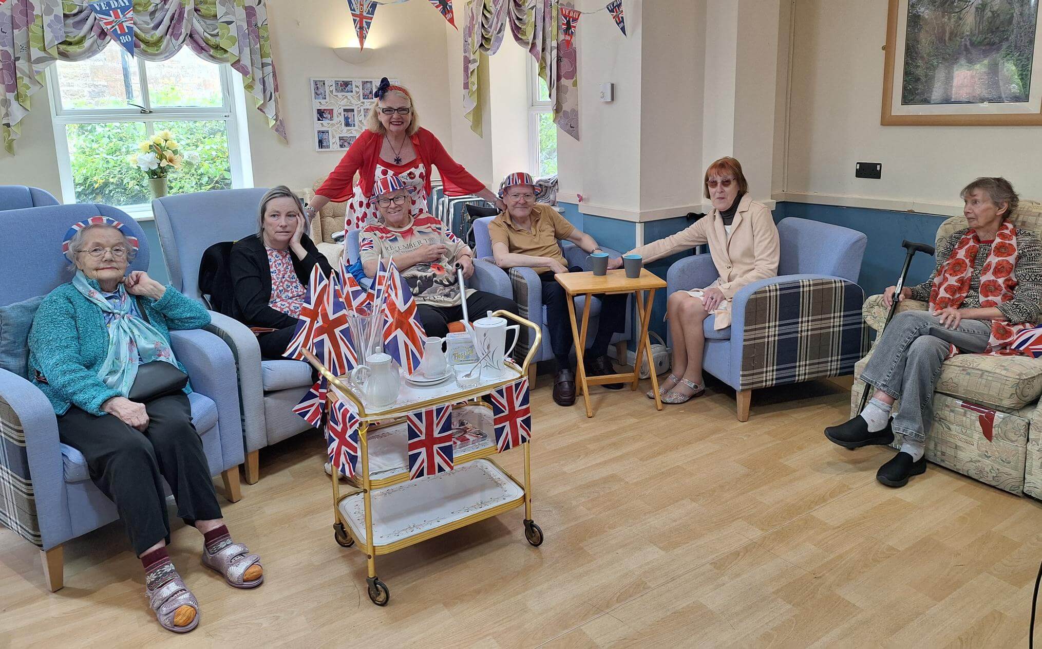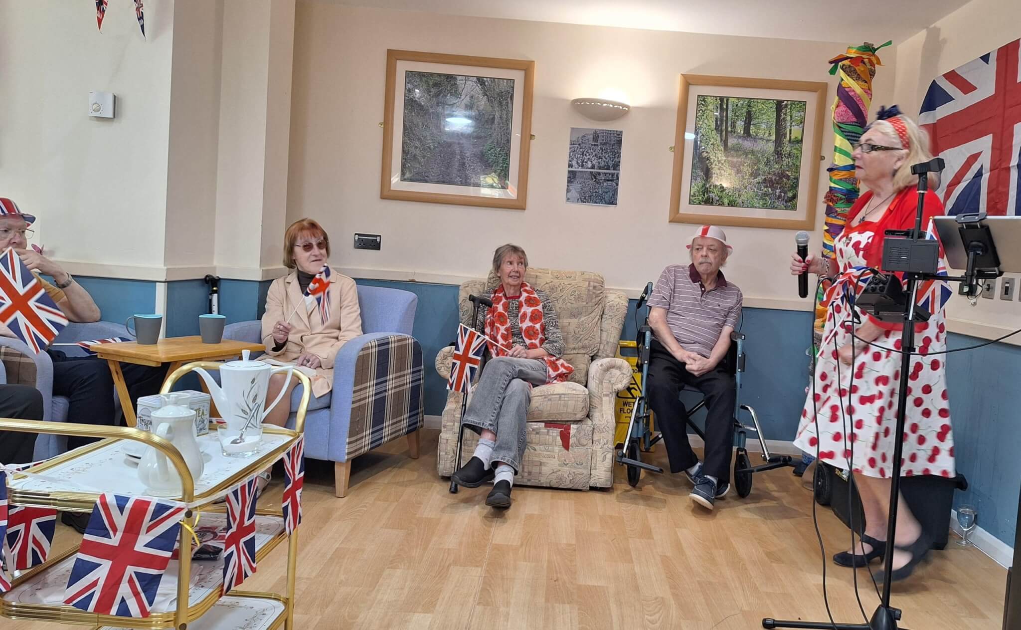 Residents shared laughter and tears during reminiscence activities, and also enjoyed accompanying visiting singer Jan McNeil with her rendition of wartime songs in the home’s red-white-and-blue-decorated lounge.