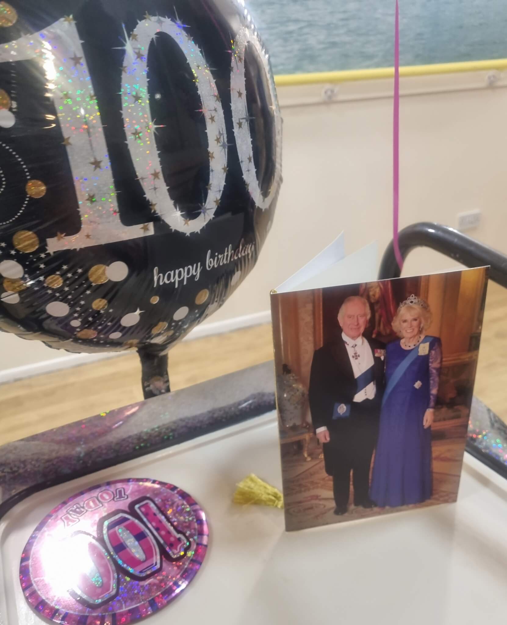 JOANNA TURNS 100 AND GETS CARD FROM THE KING