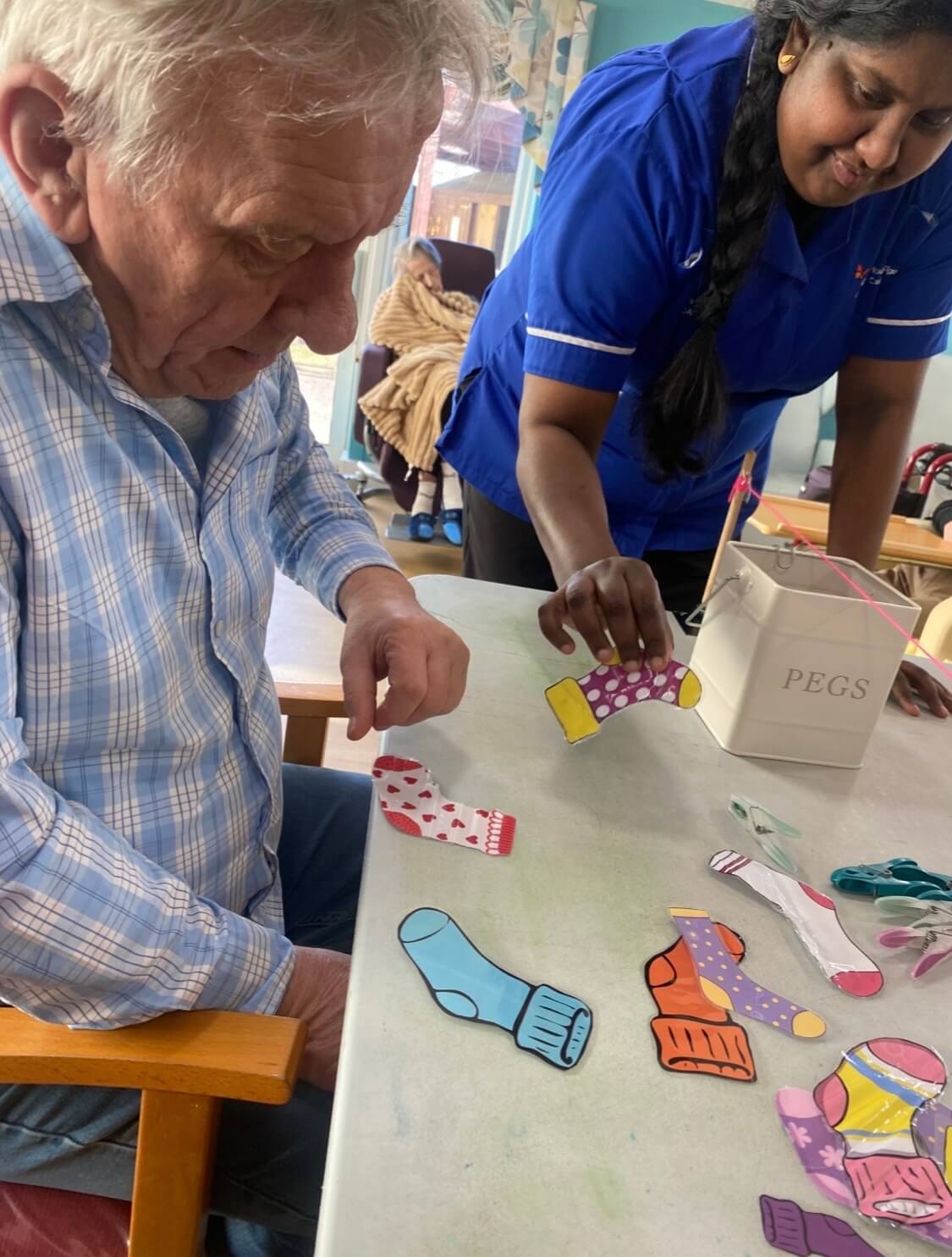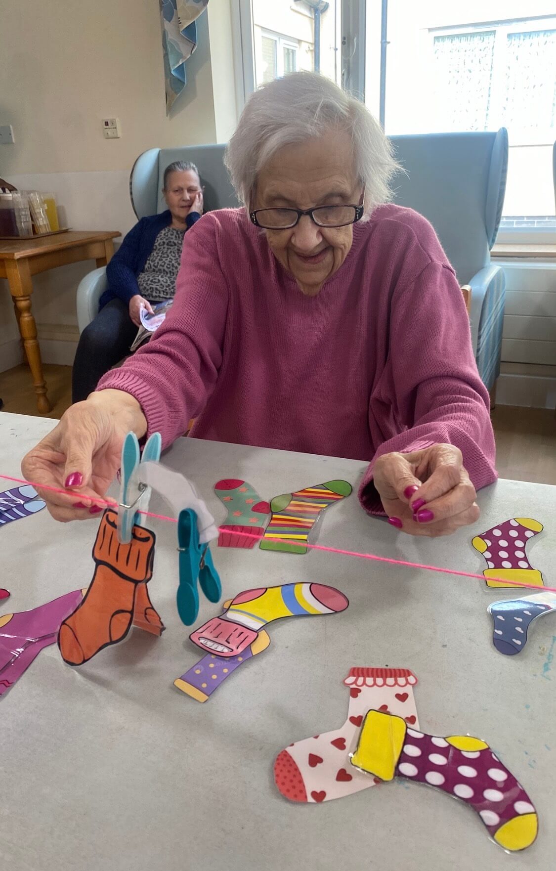 Harriet Burraston said: “We made a washing line out of two wooden spoons and some string and had lots of pictures of socks for the residents to match up and hang up on the washing line.