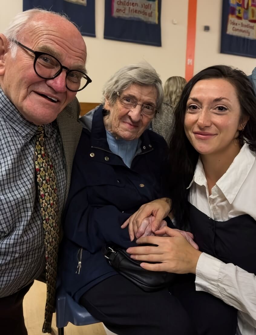- L-R Peter Venn, Joyce Hume and healthcare assistant Csilla Barabas enjoying the music