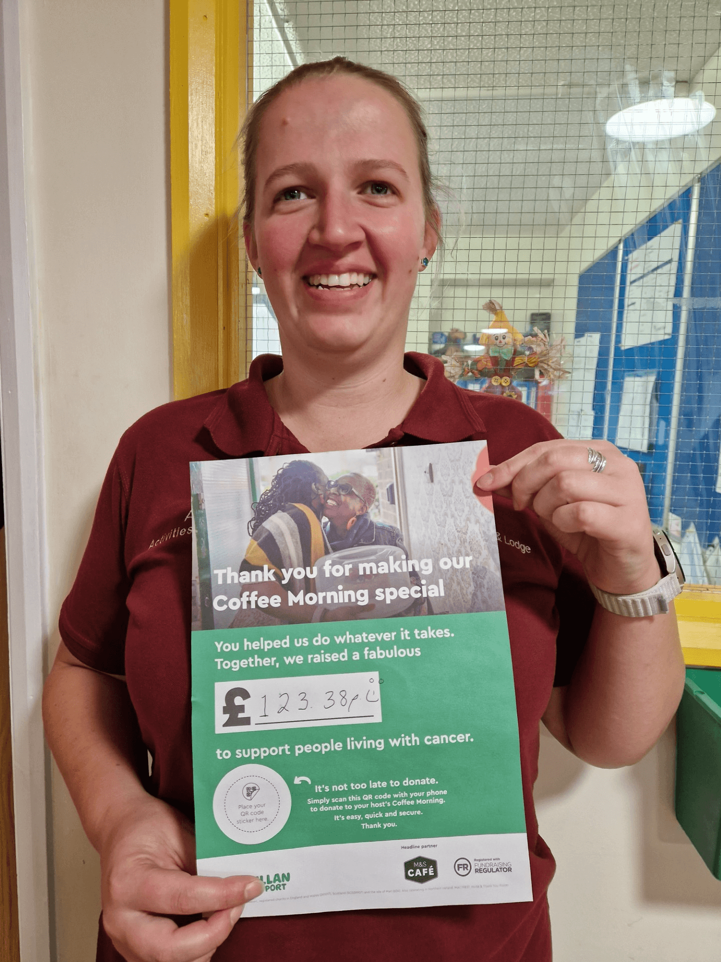Hats off to the Camelot House & Lodge team who raised £123.38 at their Macmillan Cancer Support Coffee Morning.