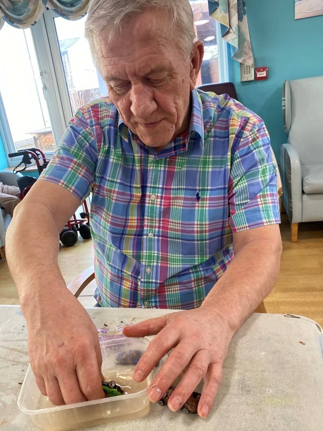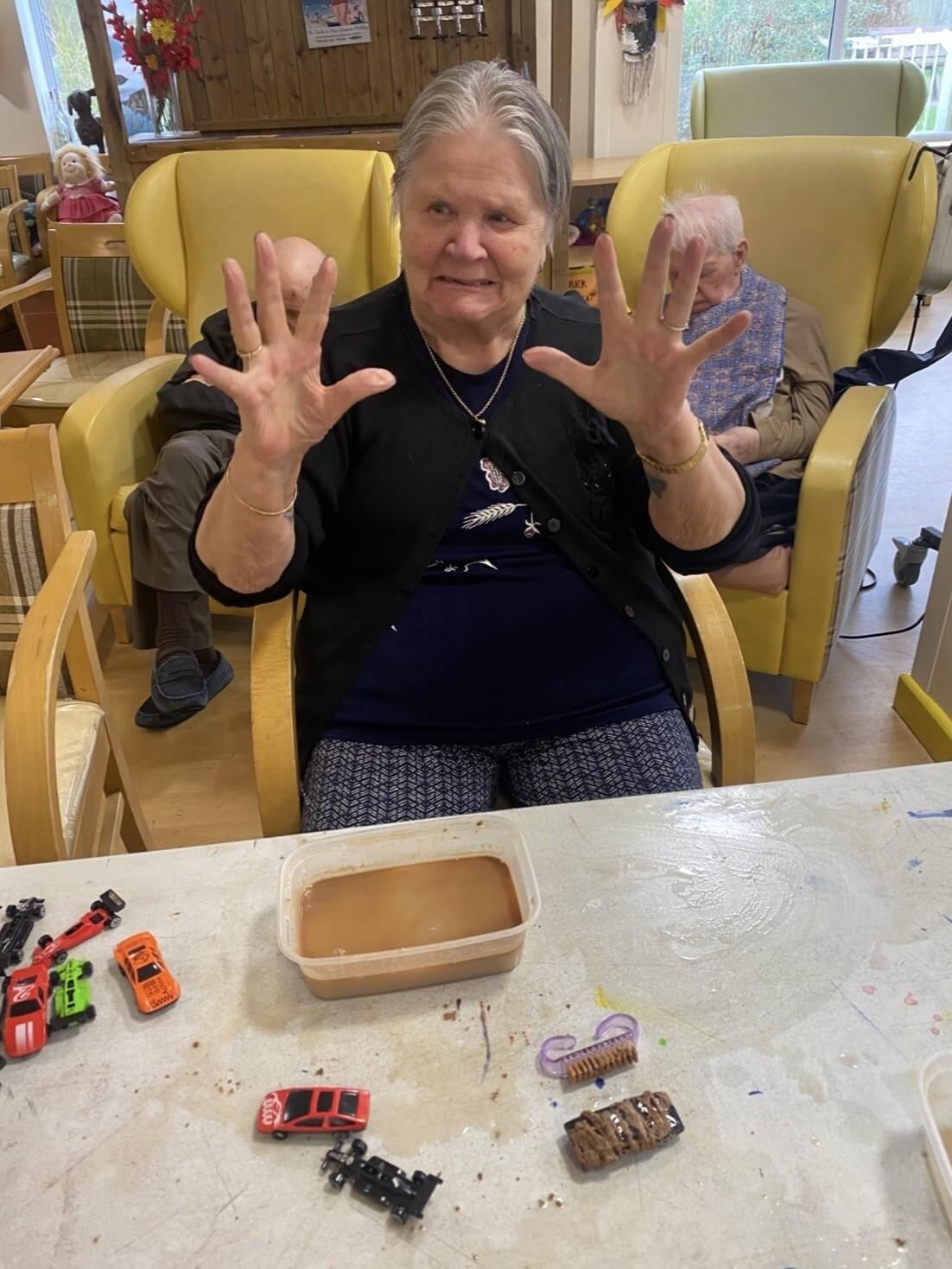 Our activities co-ordinator at Camelot House and Lodge, who is on a mission to spark conversations and reminiscing among residents, has been encouraging them to get their hands dirty with a mini chocolate car-wash.