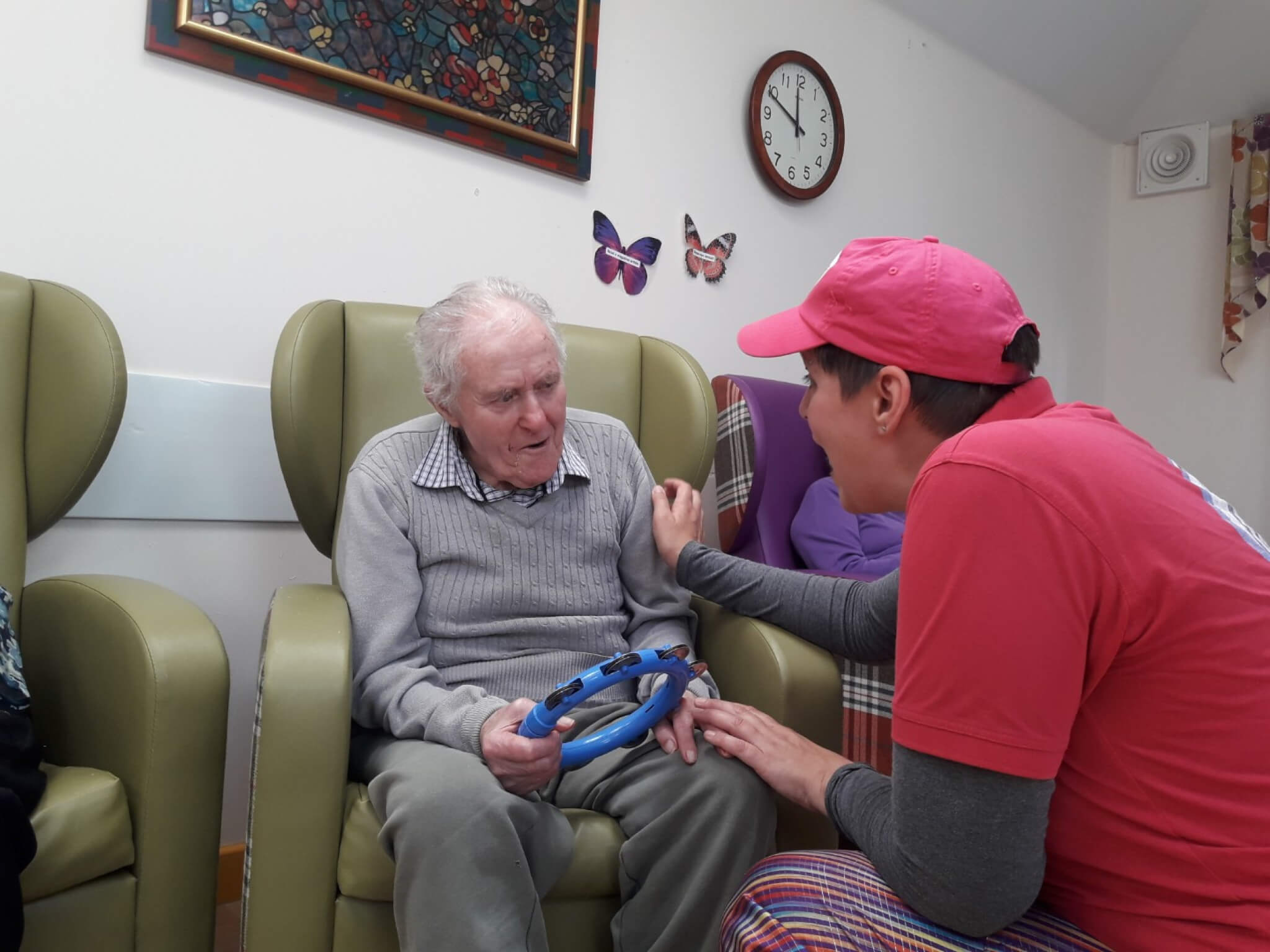 “Music sparks reminiscence in people with dementia so, for example, the music quizzes that Leander does for us will have them naming songs and singers from their younger days, and talking about special memories that particular songs might have for them.”