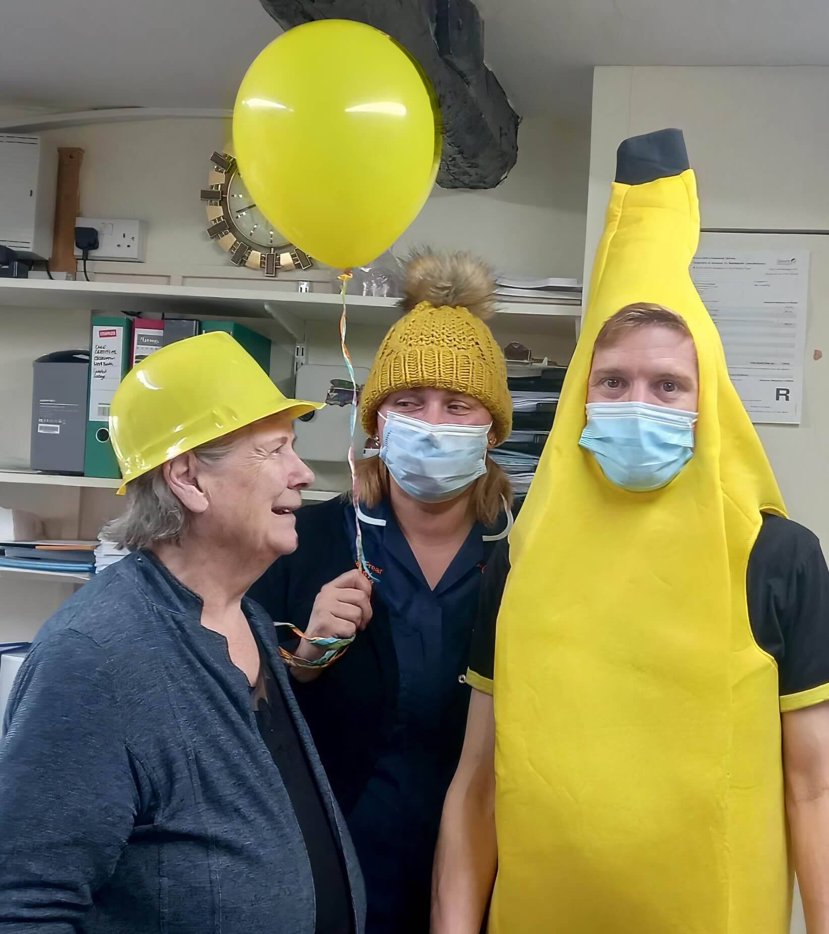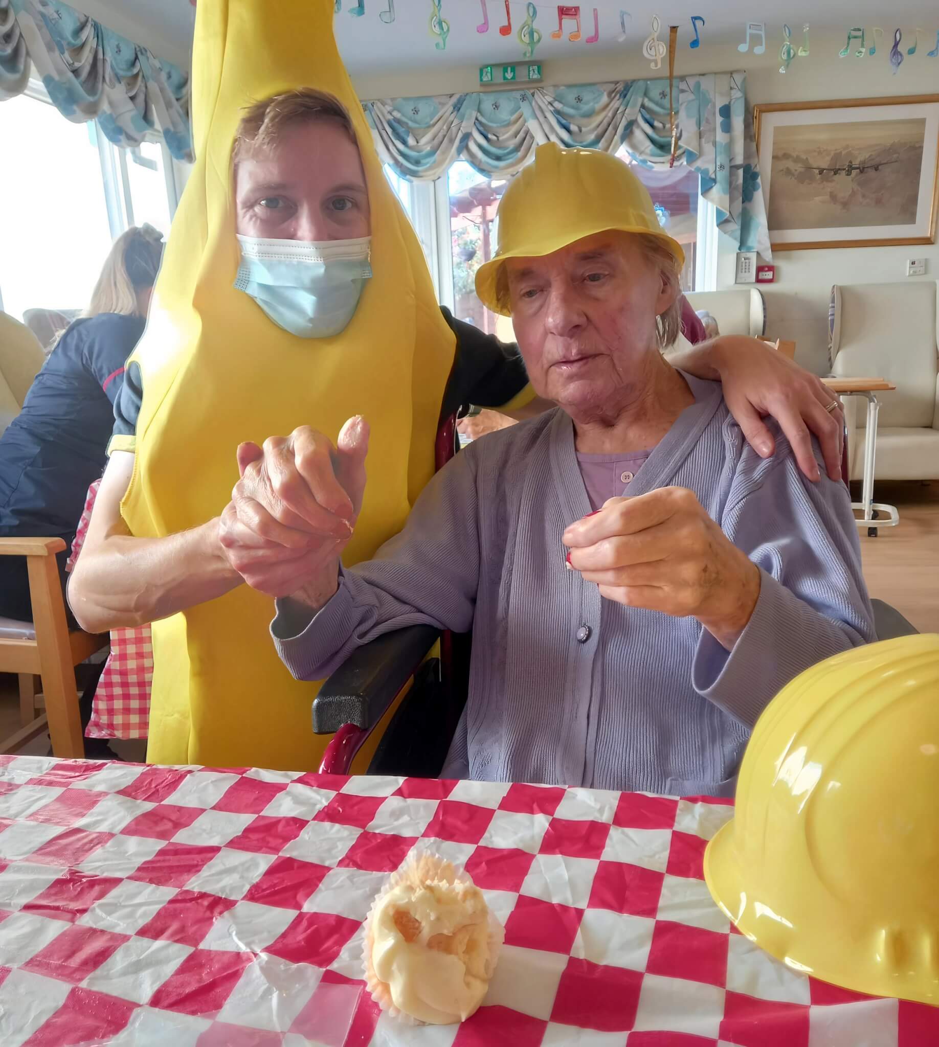 Progressing the colourful theme, staff and residents donned outfits in sunny colours, including an eye-catching banana-suit that was sported by Richard Dempslake, the activities co-ordinator.